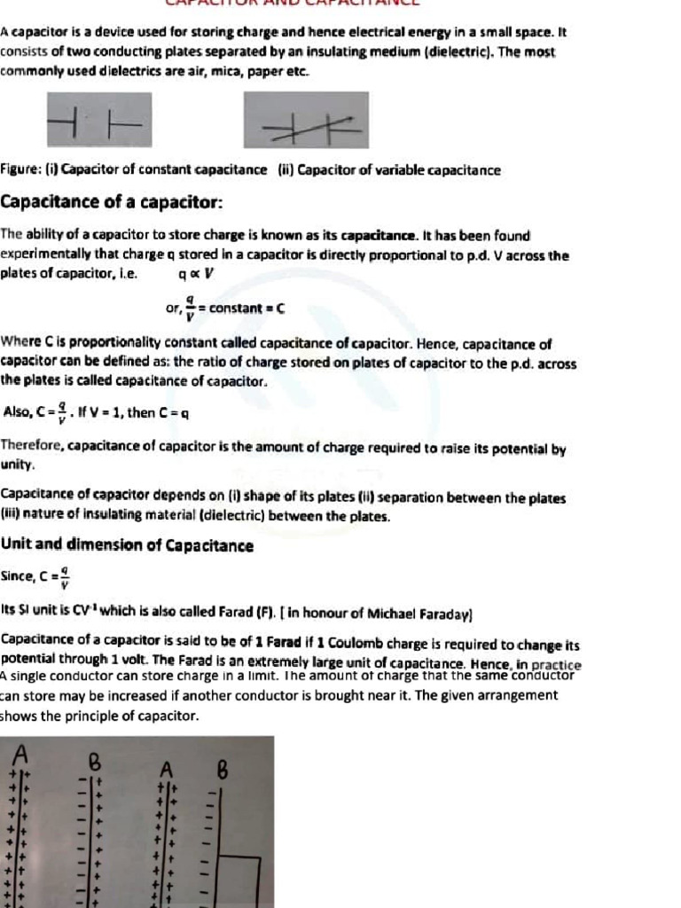 SOLUTION: CAPACITANCE short notes physics - Studypool