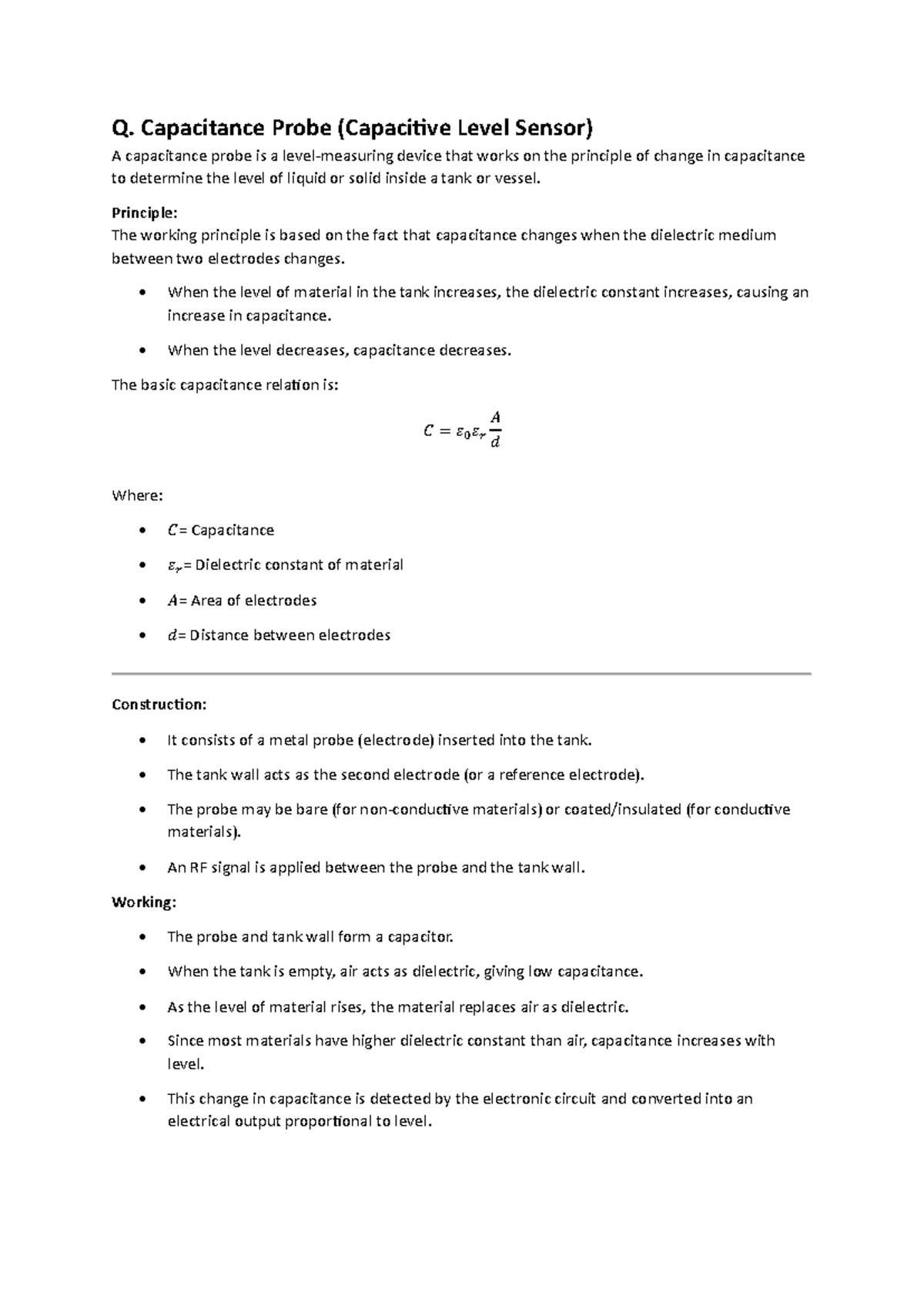 Mod 5 Self Notes: Capacitance & Level Detection Sensors - Studocu