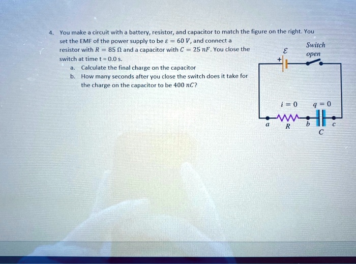 SOLVED: You make circuit with battery, resistor, and capacitor match ...
