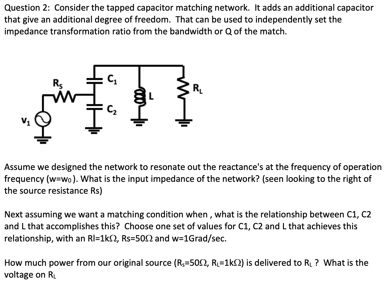 Solved Question 2: Consider the tapped capacitor matching | Chegg.com