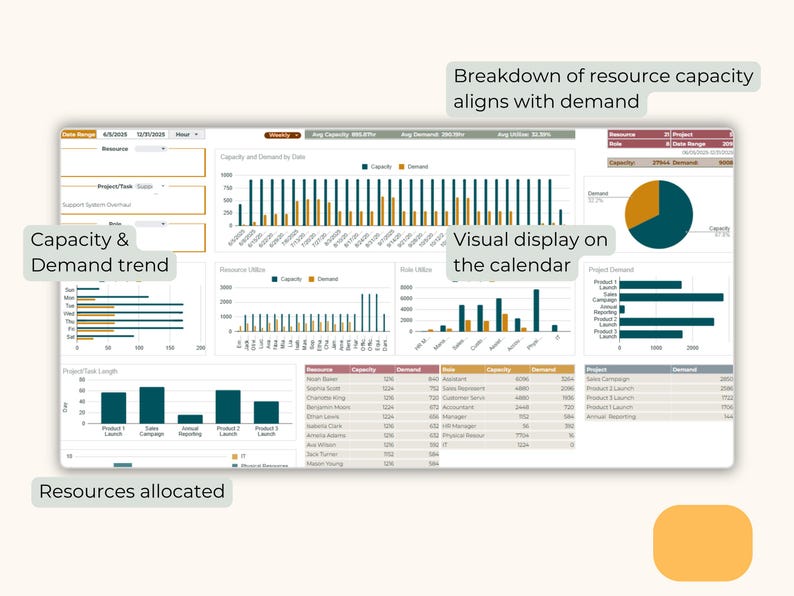 Excel Resource Availability Dashboard: Capacity Planning Template ...