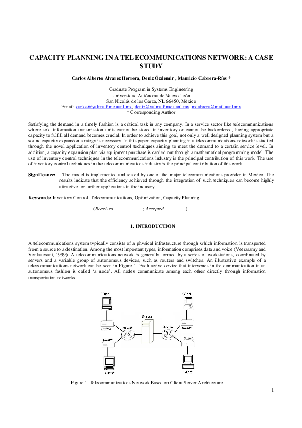 (PDF) CAPACITY PLANNING IN A TELECOMMUNICATIONS NETWORK: A CASE STUDY
