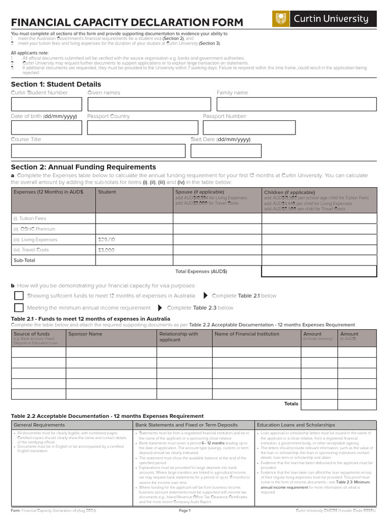 Financial Capacity Declaration for Skilled Migration to Australia ...