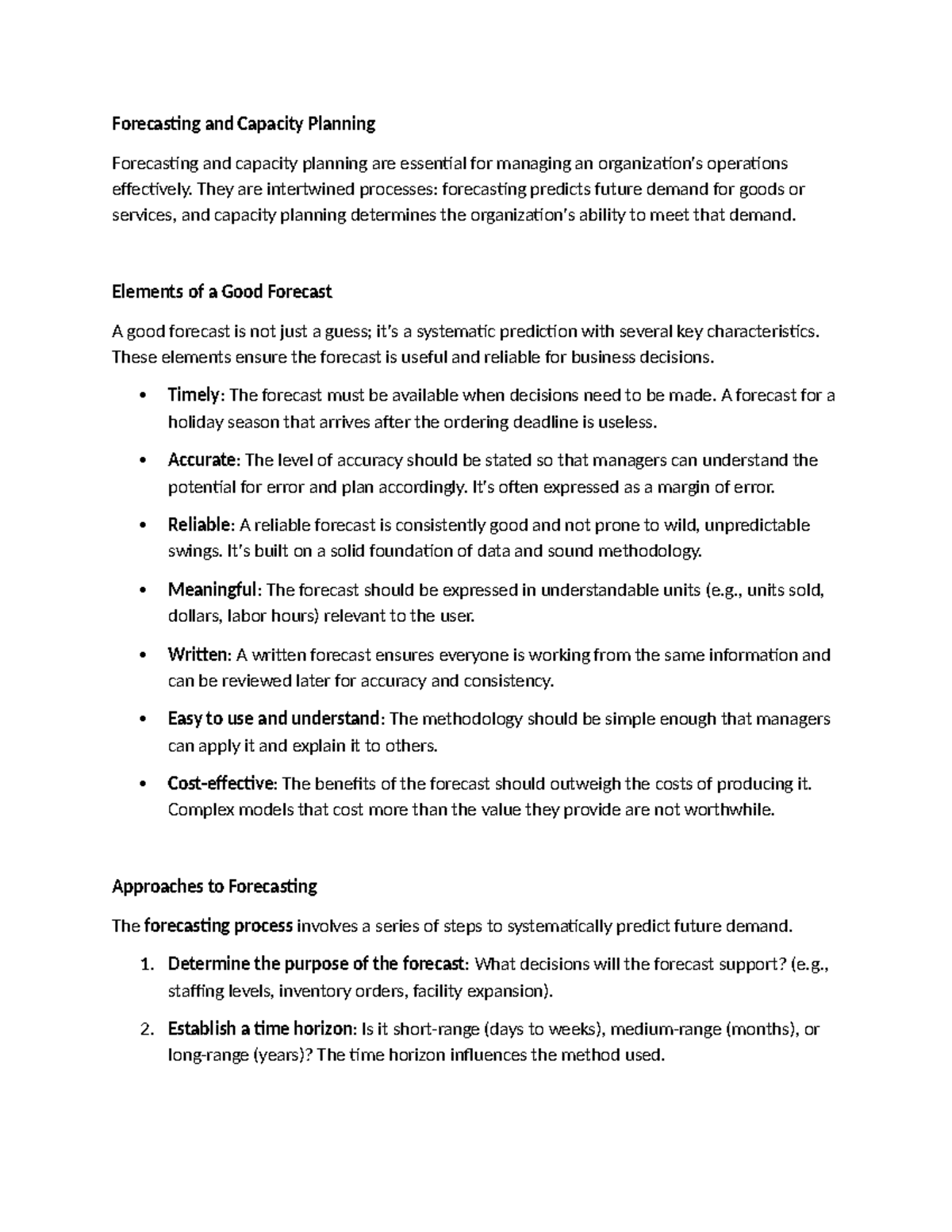 Forecasting and Capacity Planning: Key Concepts and Strategies - Studocu