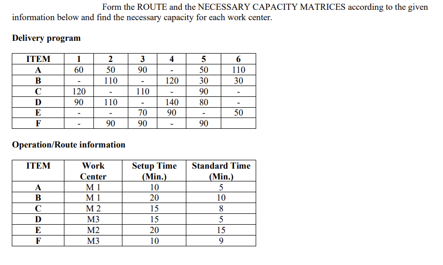 Solved Form the ROUTE and the NECESSARY CAPACITY MATRICES | Chegg.com