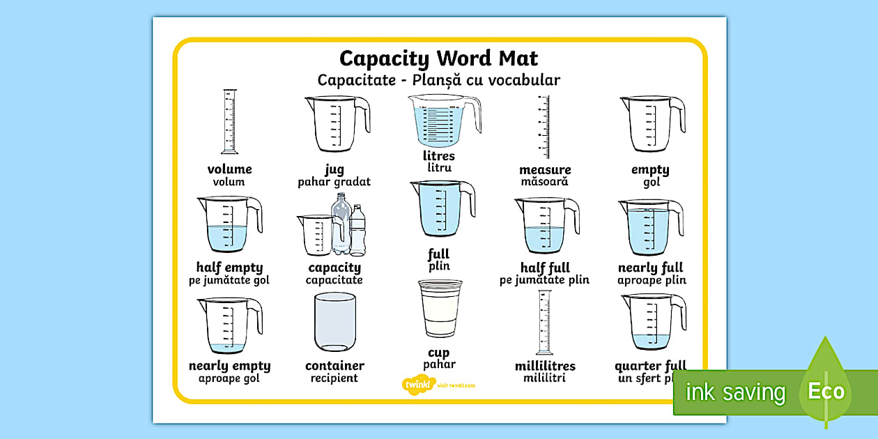 Capacity Word Cards English/Romanian (Teacher-Made) - Twinkl