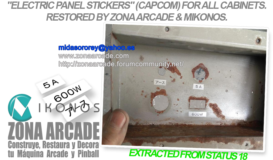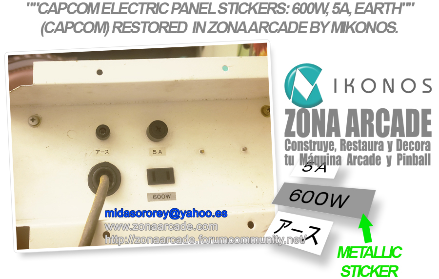 "CAPCOM ELECTRIC PANEL STICKERS: 600W, 5A, EARTH" (CAPCOM) arcade ...