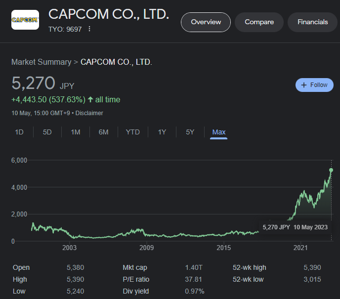 Andy Robinson on Twitter: "Capcom's stock hit another all-time high ...
