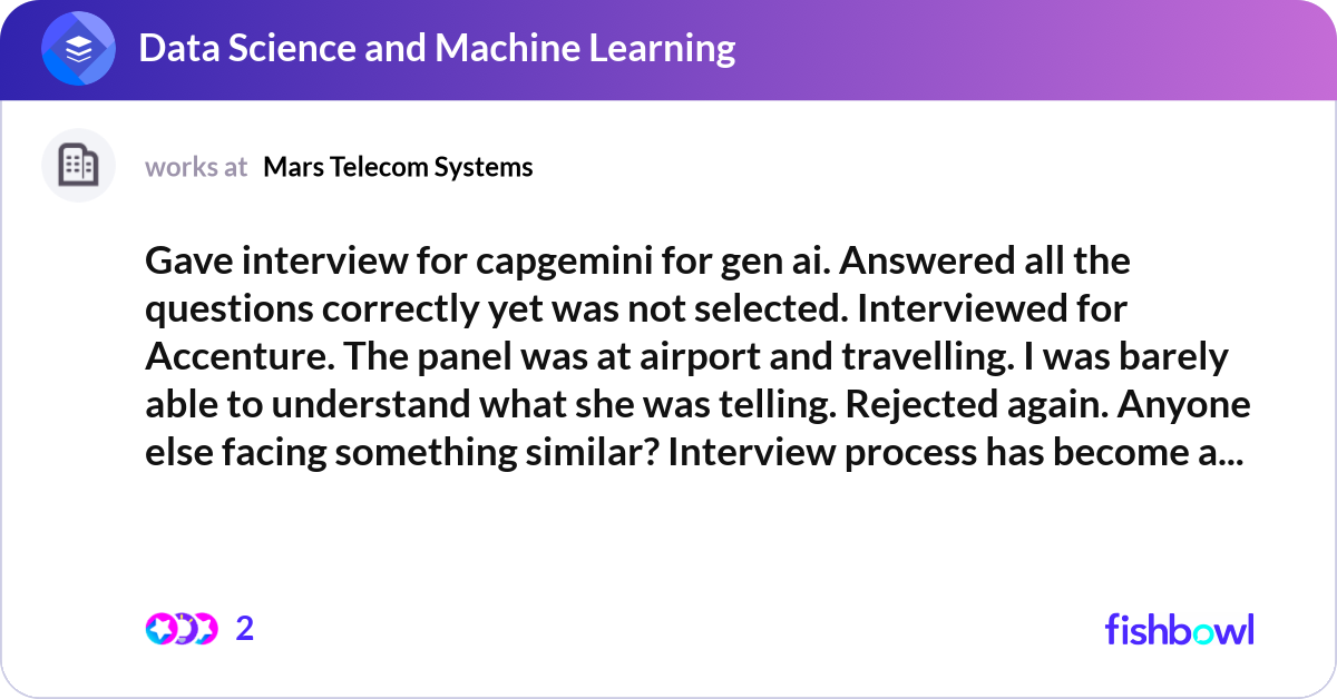 Gave interview for capgemini for gen ai. Answered ... | Fishbowl