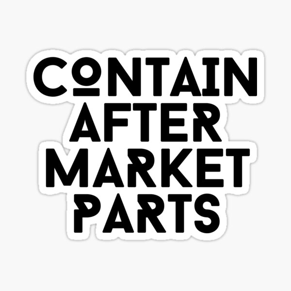 "Contain aftermarket parts. Funny, text only design. Black text ...