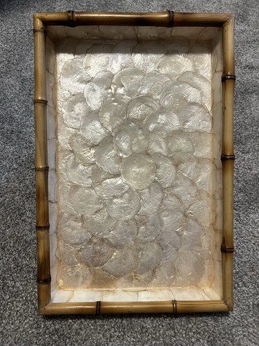 Rectangular Capiz Shell Vanity OR Serving Tray W/Bamboo Trim MCM | eBay