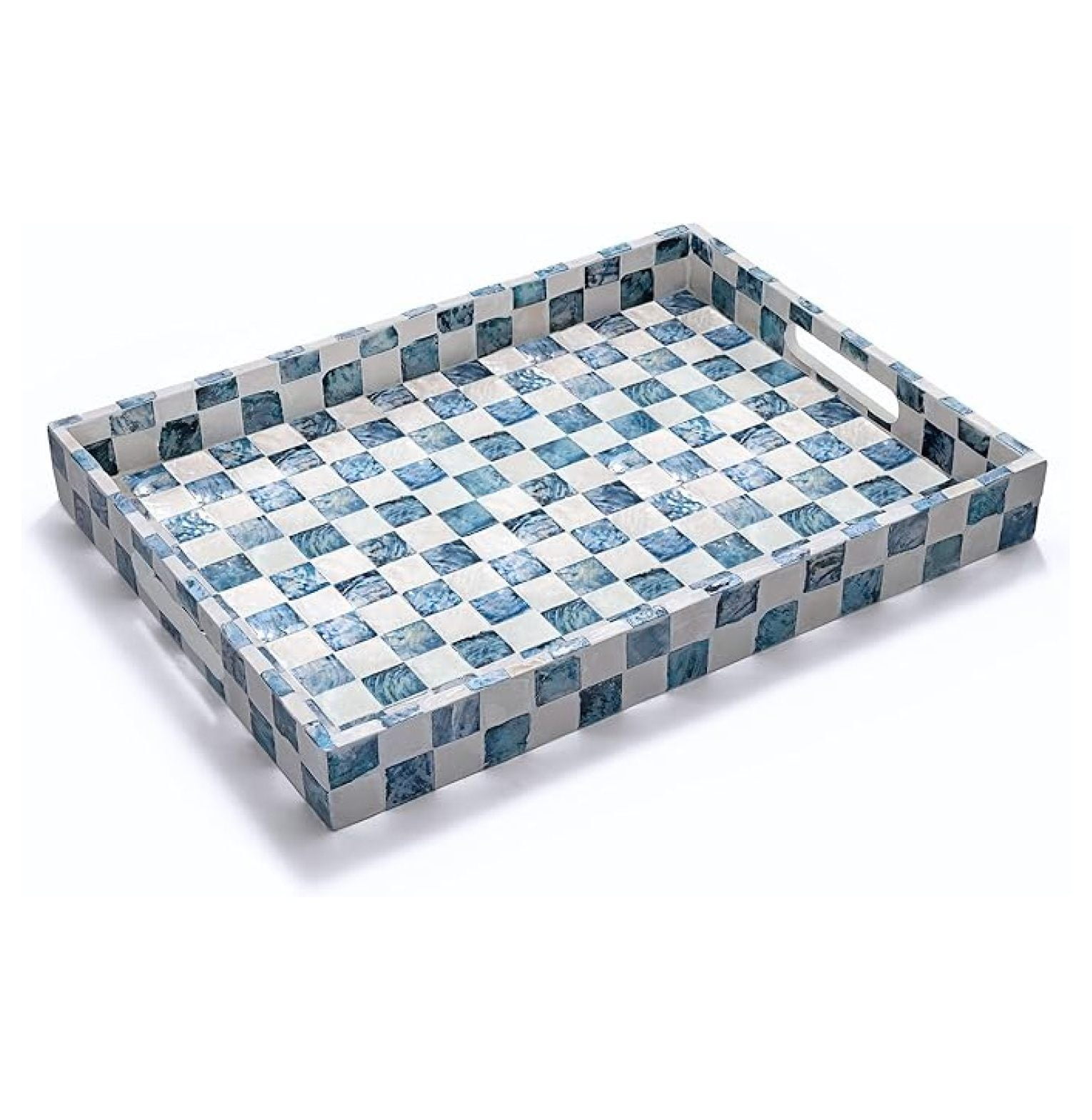Rectangle Decorative Tray with Handles, Handmade Checkered Serving Tray ...