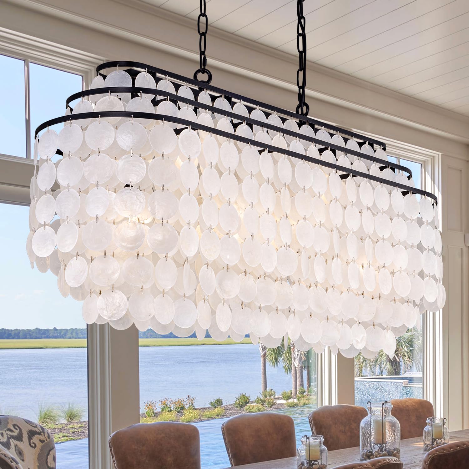TOCHIC Rectangular Capiz Shell Chandelier, Coastal Beach Lighting 6 ...