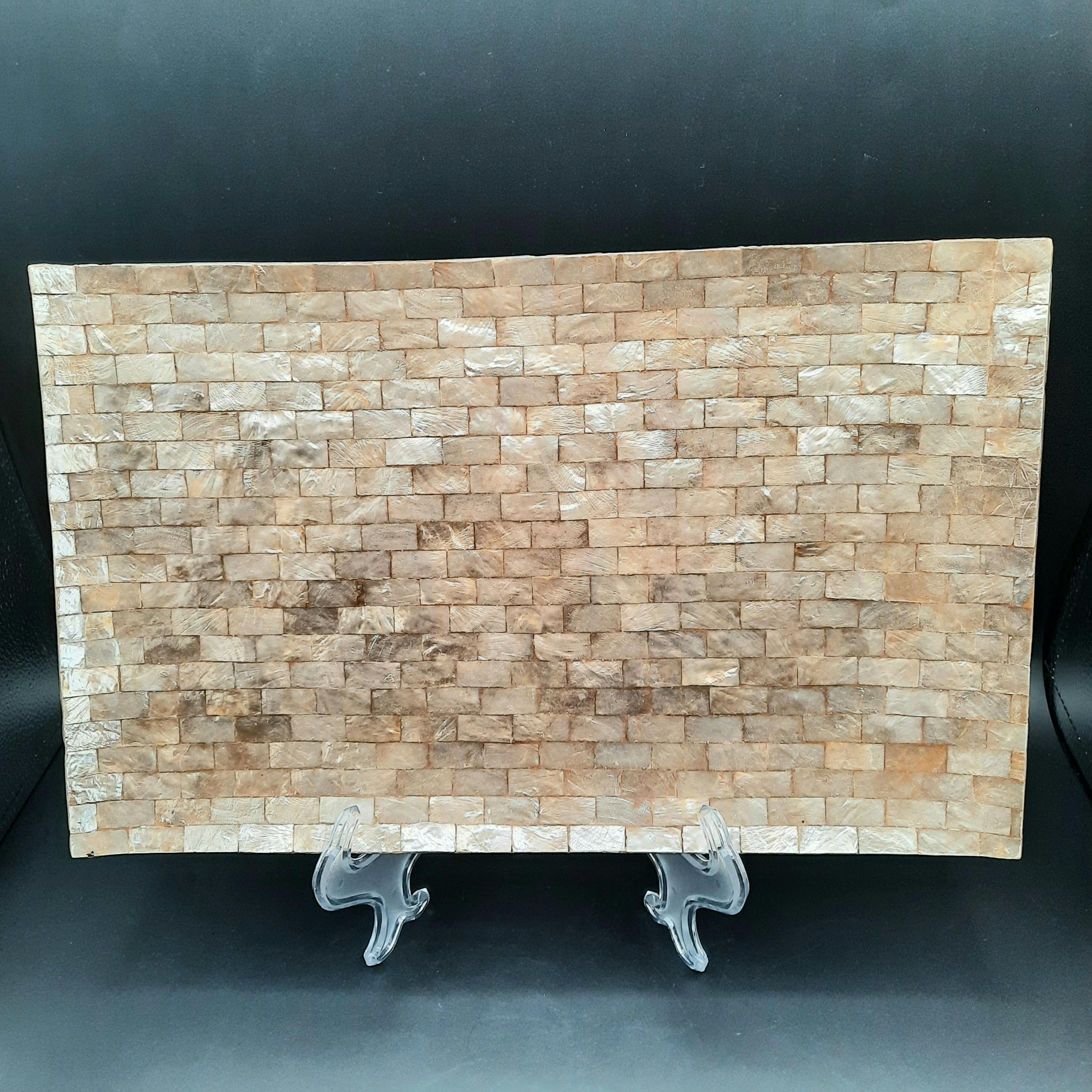 Large Rectangular Vintage Capiz Shell and Wood Tray at 1stDibs