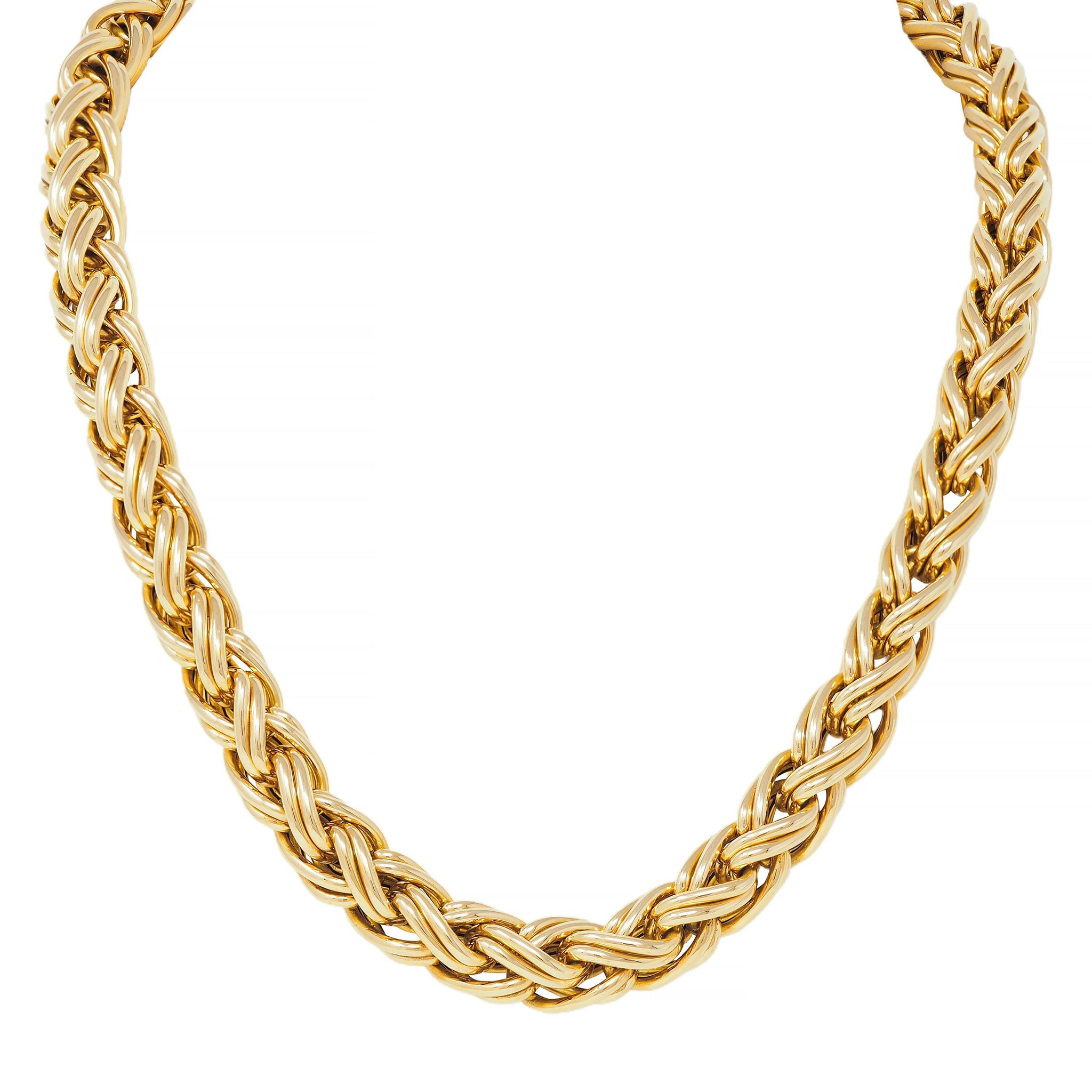 Caplain Paris 1970's French 18 Karat Yellow Gold Vintage Wheat Chain N
