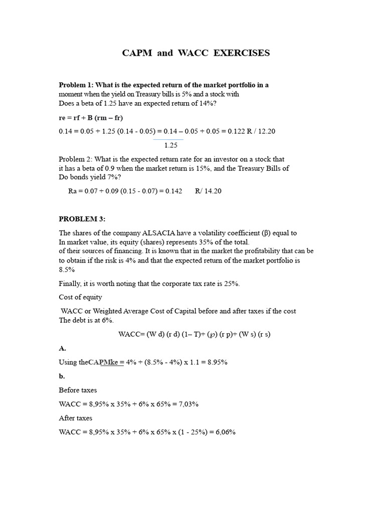Capm and Wacc Exercises | PDF | Cost Of Capital | Capital Asset Pricing ...