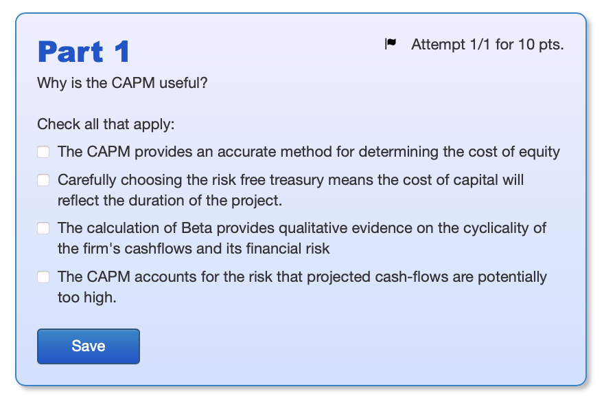 Solved | Attempt 1/1 for 10 pts. Part 1 Why is the CAPM | Chegg.com