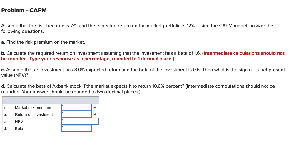 Capital Asset Pricing Model (CAPM) Problems - Calculating | Course Hero