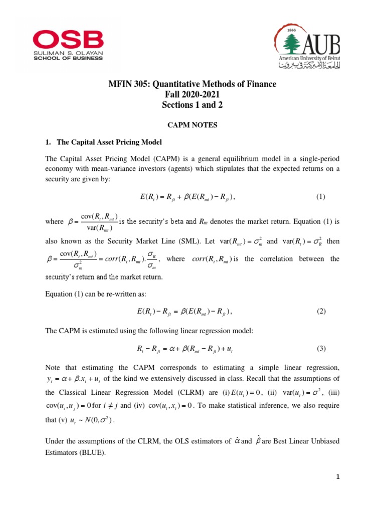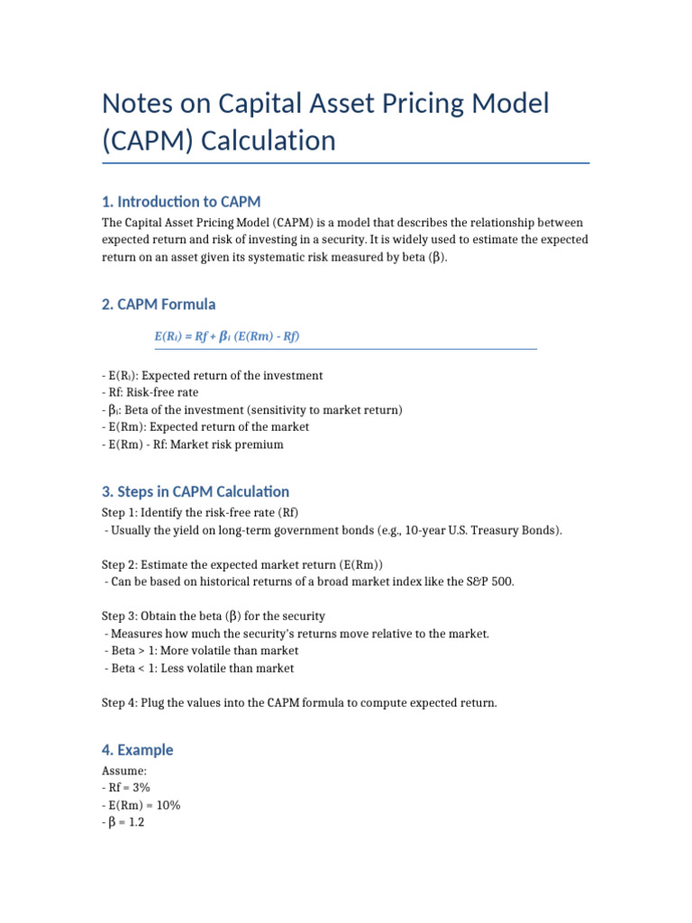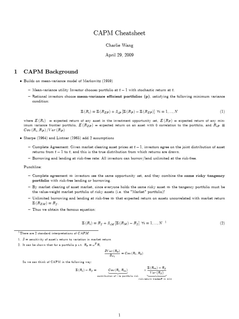 CAPM_Notes | PDF | Capital Asset Pricing Model | Investing