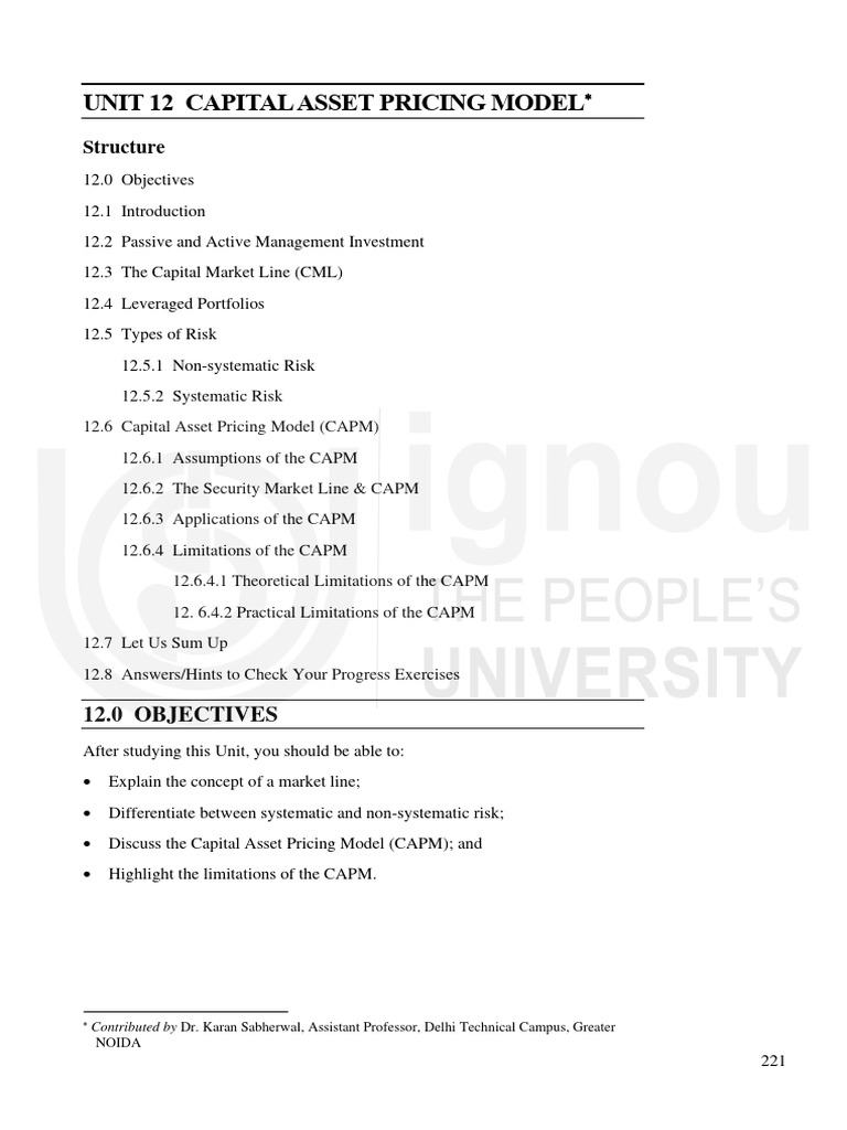 Topic 9: Capital Asset Pricing Model: (A) Statement of The CAPM | PDF ...