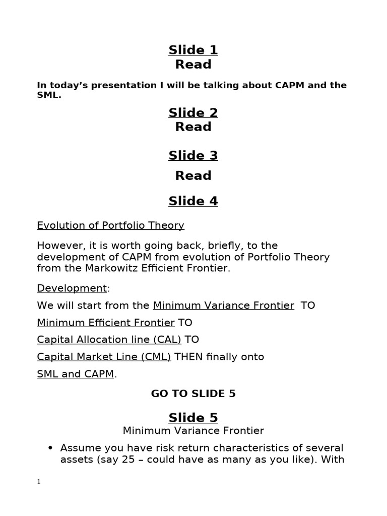 CAPM and SML Explained in Portfolio Theory | PDF | Capital Asset ...