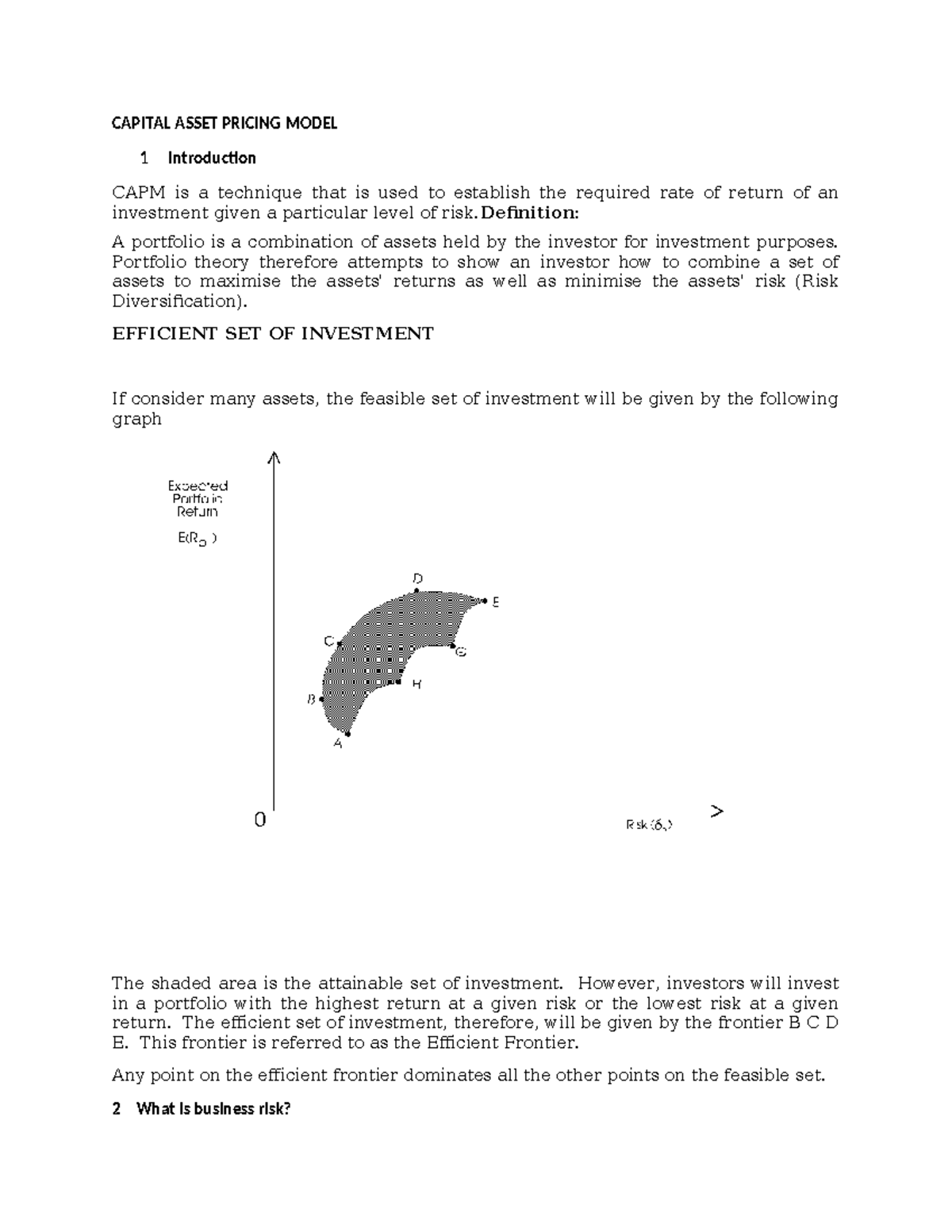 Capital Asset Pricing Model (CAPM) -notes - CAPITAL ASSET PRICING MODEL ...