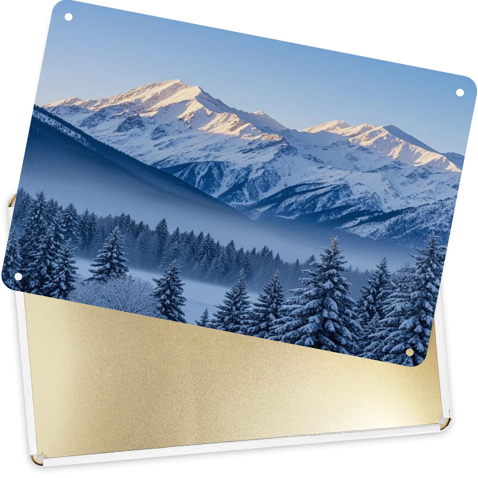 Decorative Metal Signs Plaques Snow-Capped Mountain & Snowy Forest ...