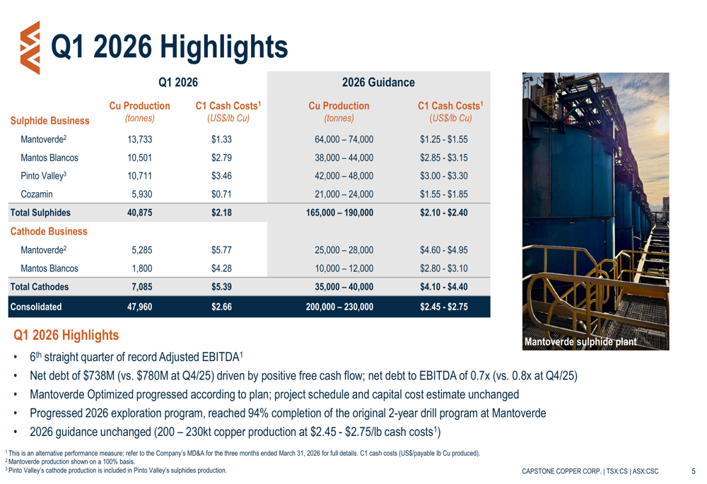 Capstone Copper Q1 2026: zesde opeenvolgende record-EBITDA Door ...