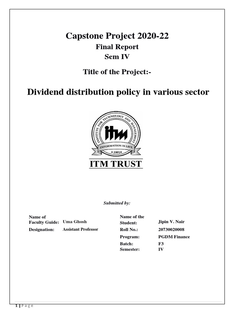 Capstone Project 2020-22: Dividend Distribution Policy in Various ...