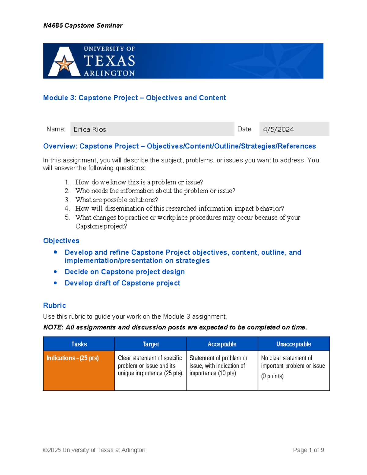 N4685 Capstone Project Module 3: Objectives & Strategies Outline - Studocu