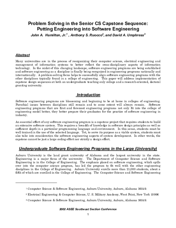 (PDF) Problem Solving in the Senior CS Capstone Sequence: Putting ...