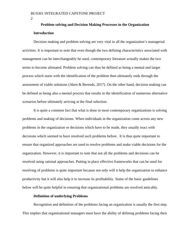BUS301: Integrated Capstone Project: Problem Solving Report