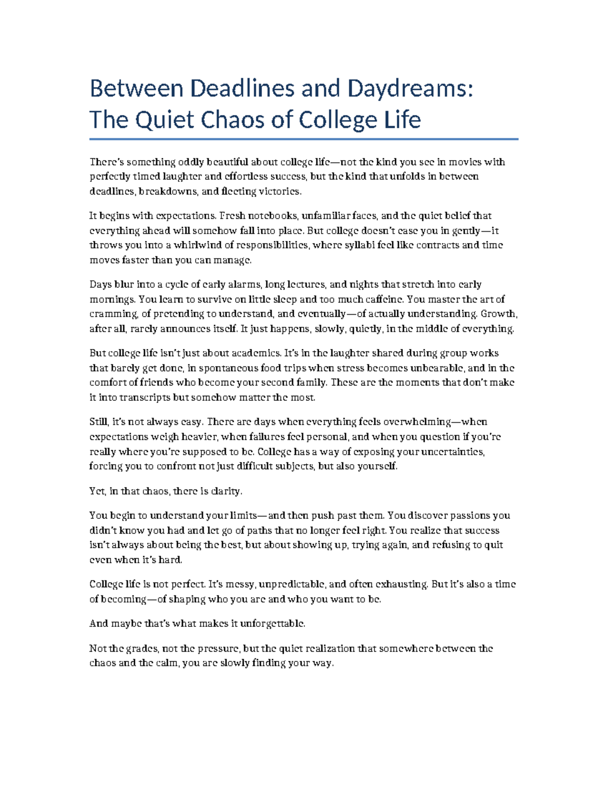 College Life Reflections: Navigating Chaos and Growth - Studocu