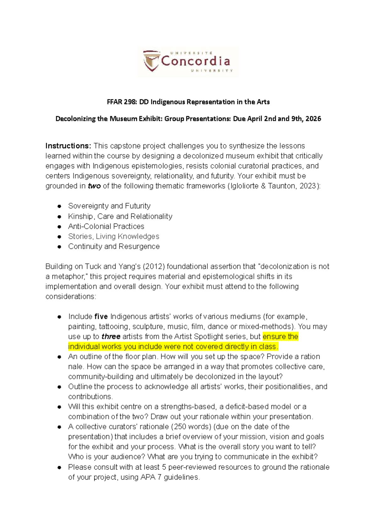 FFAR 298: Final Presentation on Decolonizing the Museum Exhibit - Studocu