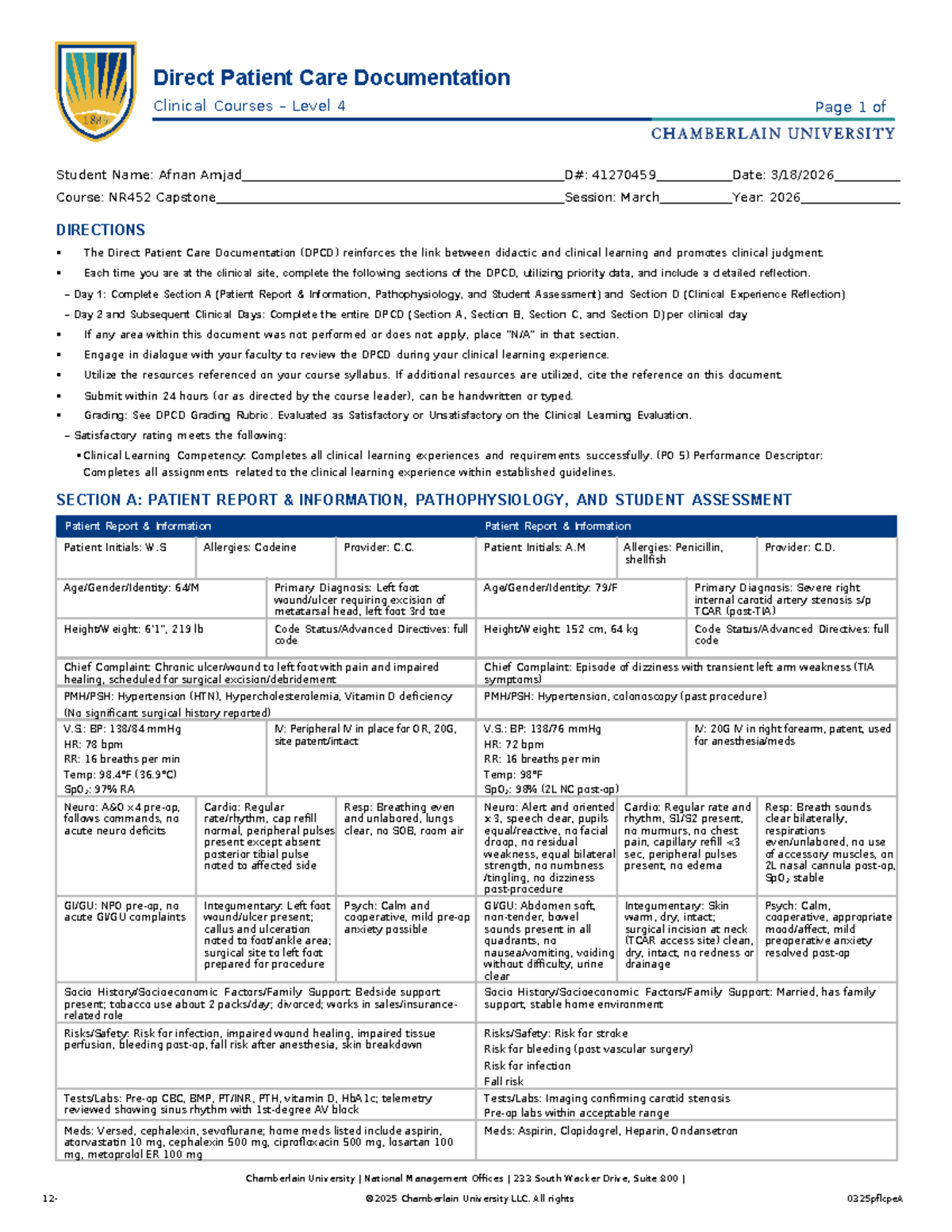 NR452 Capstone Level 4: Direct Patient Care Documentation Guide - Studocu