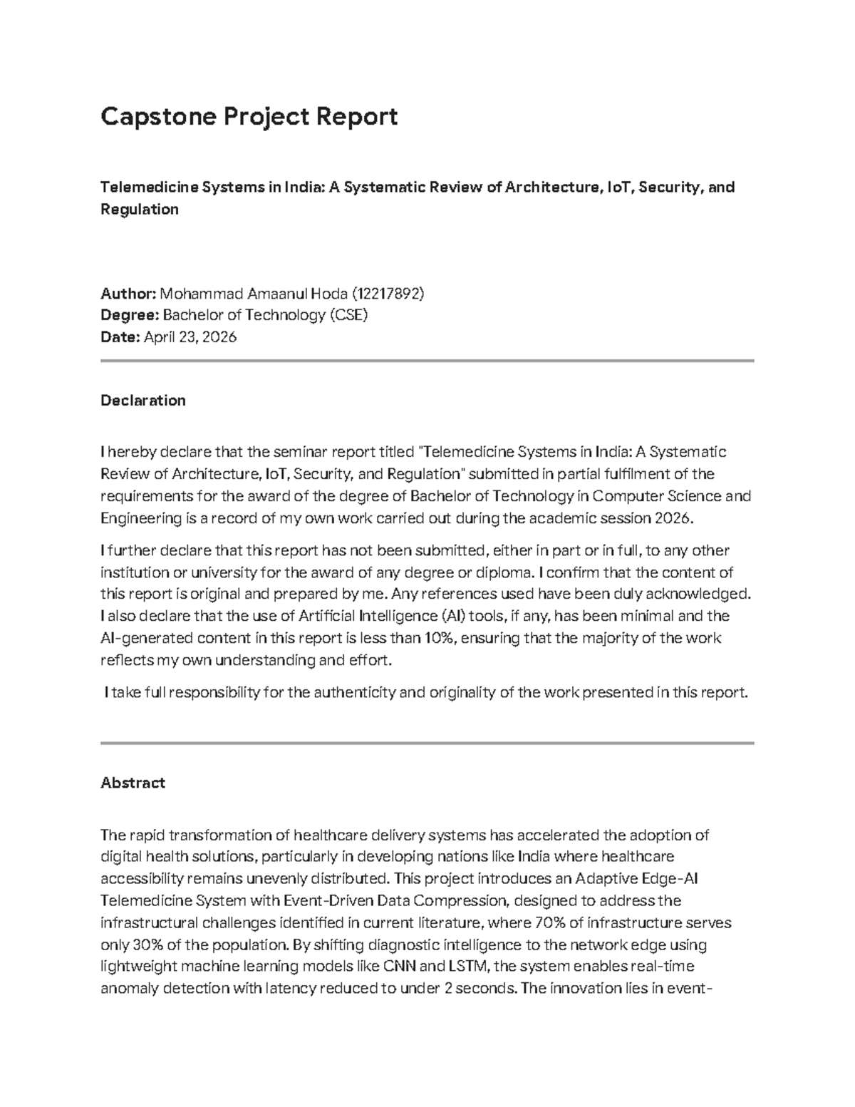 Capstone Project Report: Telemedicine System for Rural India (CSE ...