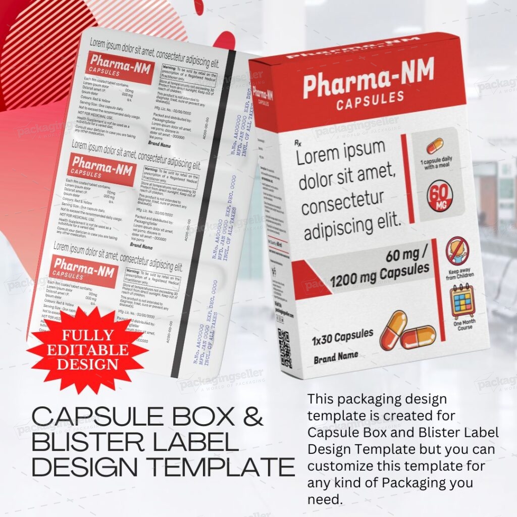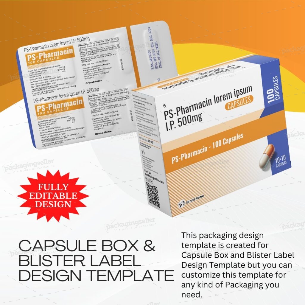 Capsule Box and Blister Design Template PS315 - PackagingSeller.com