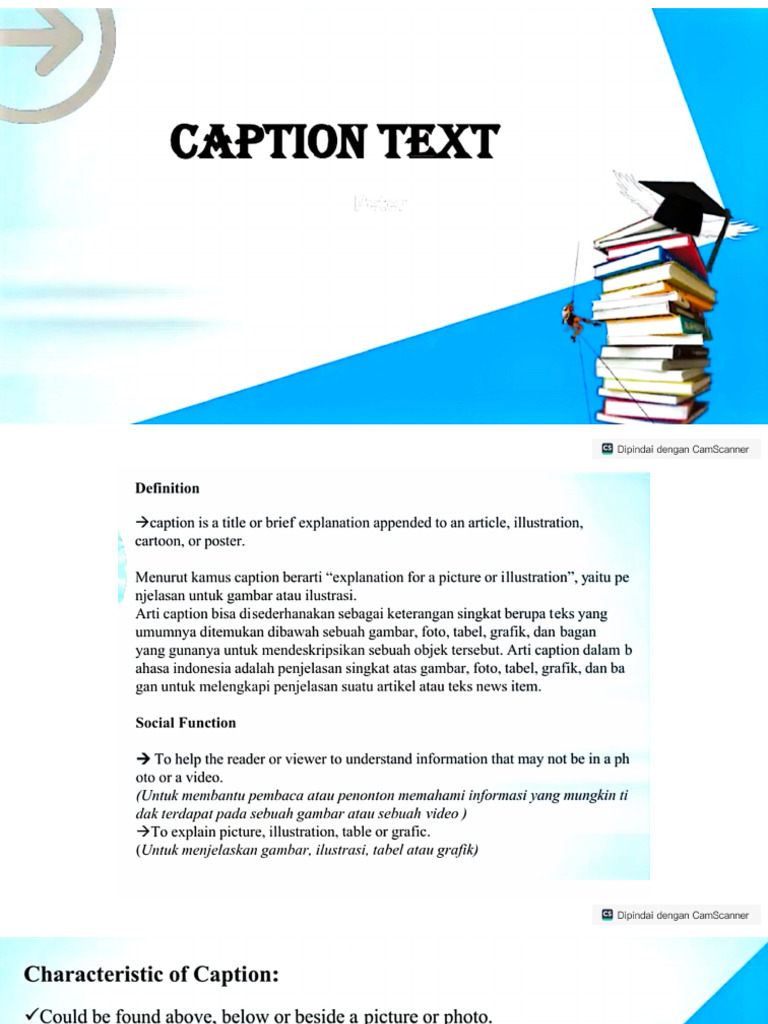 Definition, Social Function, Language Features, Types of Caption | PPTX
