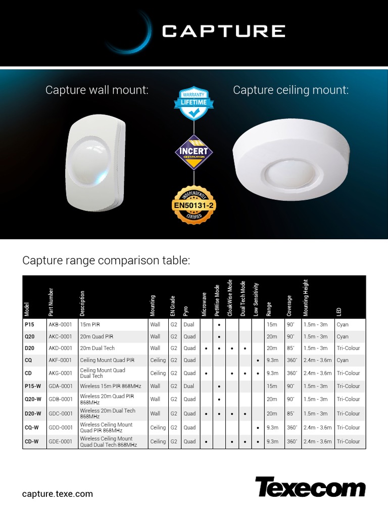 Texecom AKD-0006 Capture Grade 2 Wired 20m Dual Tech PIR Sensor ...