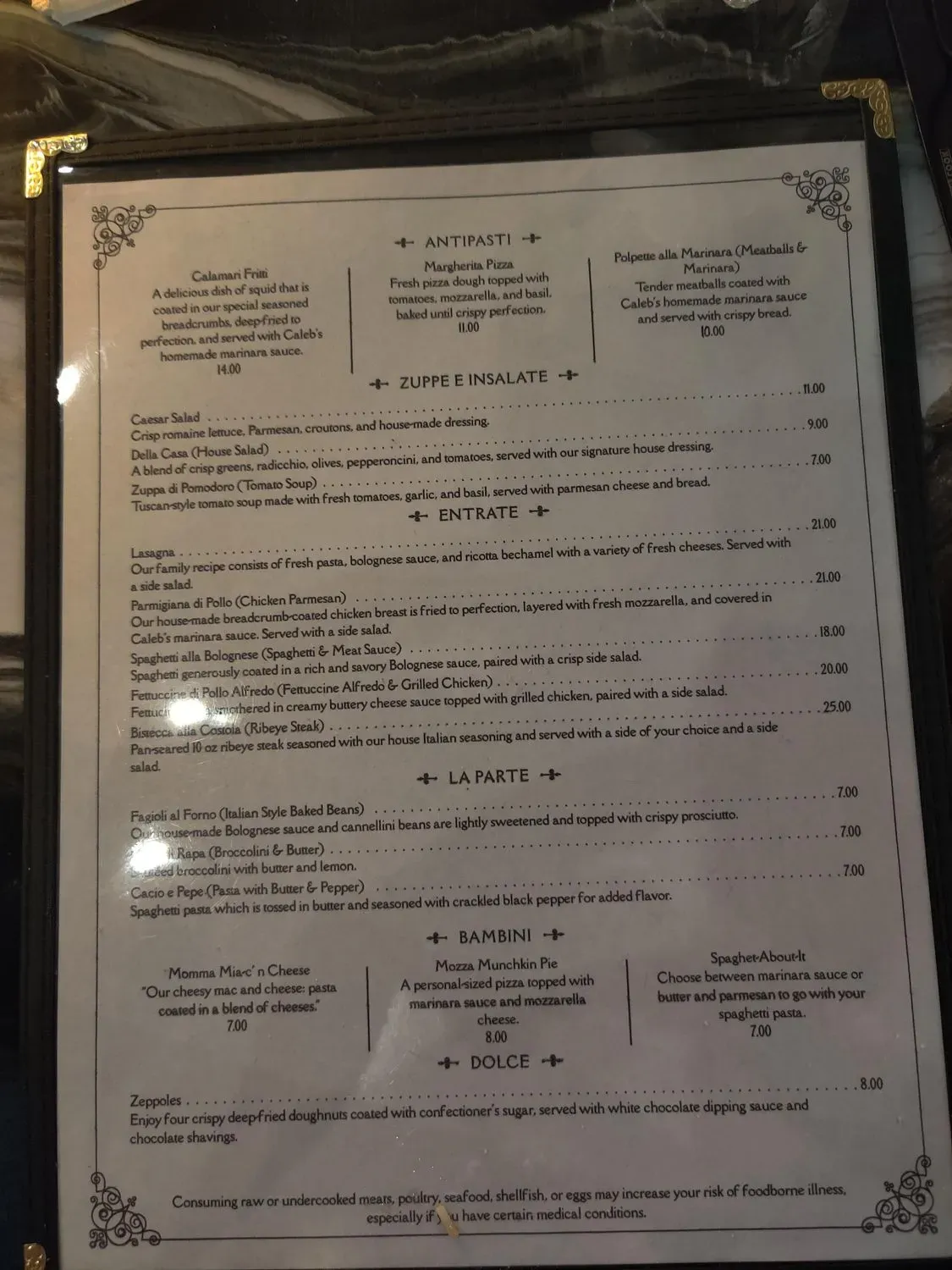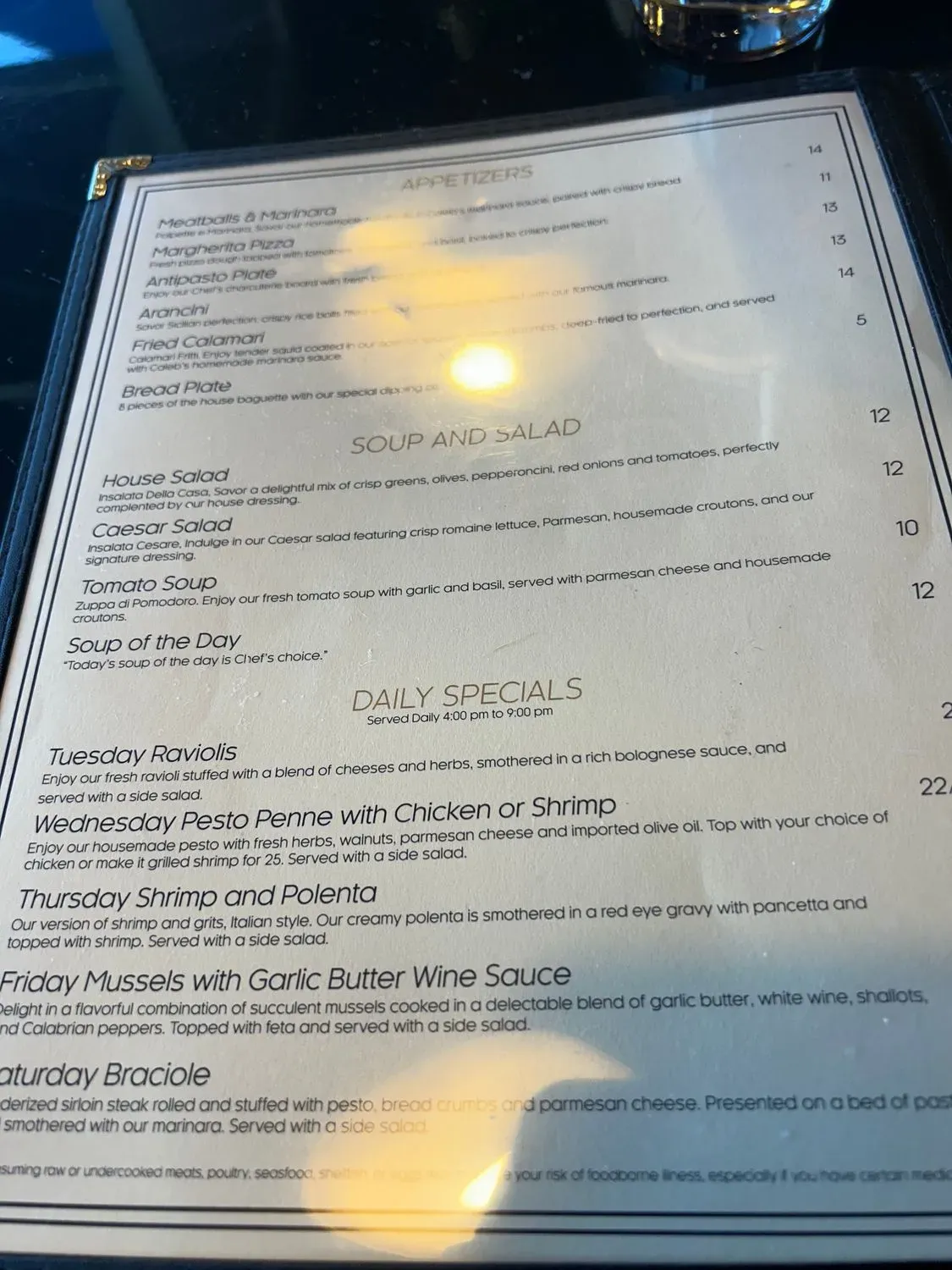 Menu at Capy's Italian Restaurant, Moncks Corner
