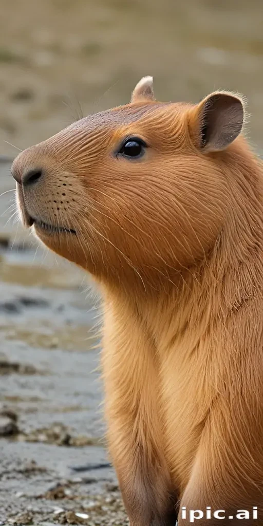 A close-up of a capybara in a natural setting, showcasing its fur and ...