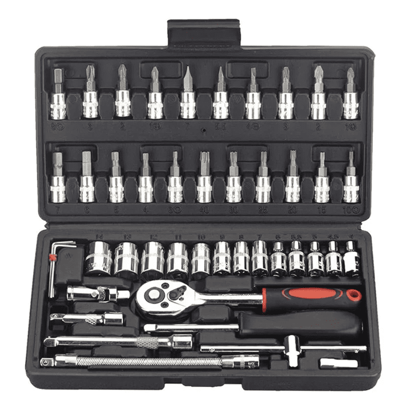 46 Piece Mechanic Tool Set, 1/4 Inch Drive Ratchet Wrench and Socket ...