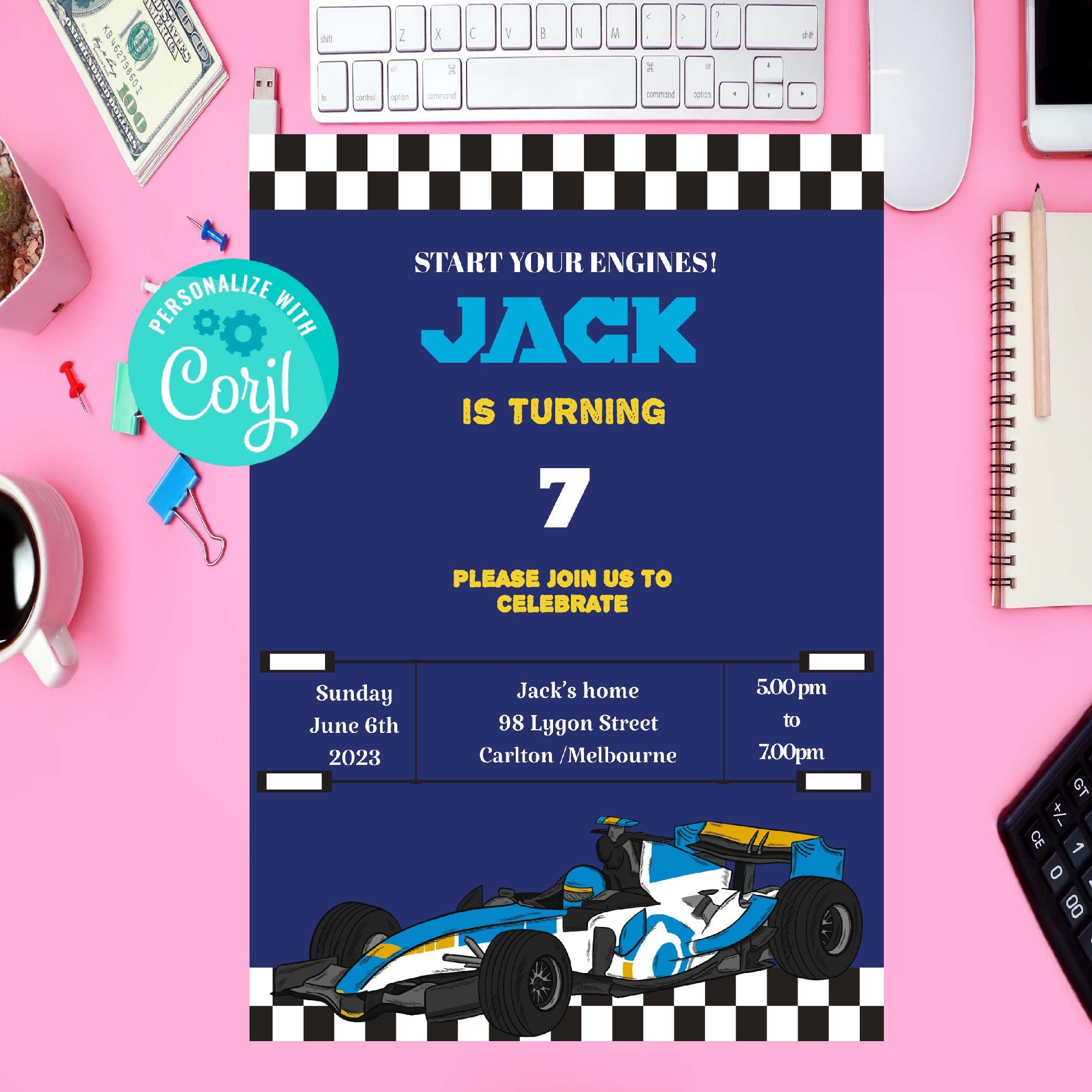 Race Car Invite, Racing Car Birthday Invitation, Formula 1 Theme, F1 ...