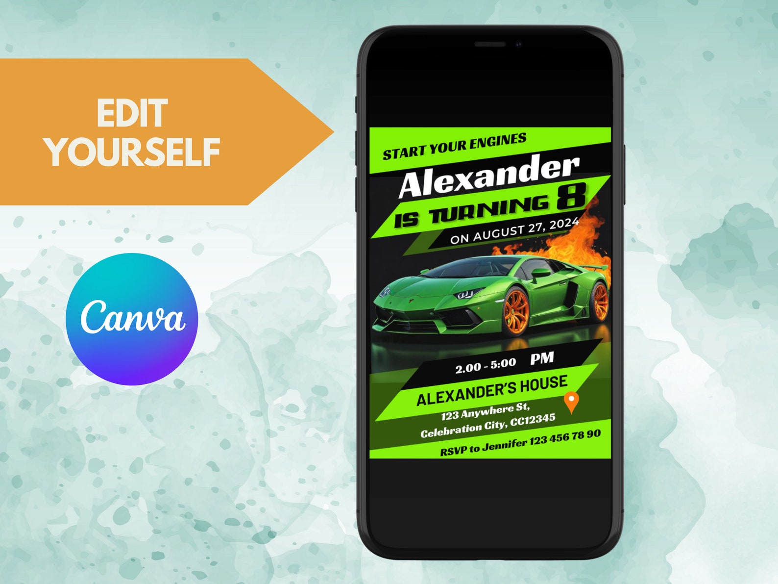 Personalized File Cars Invitation Instant Download | Lightni | Inspire ...