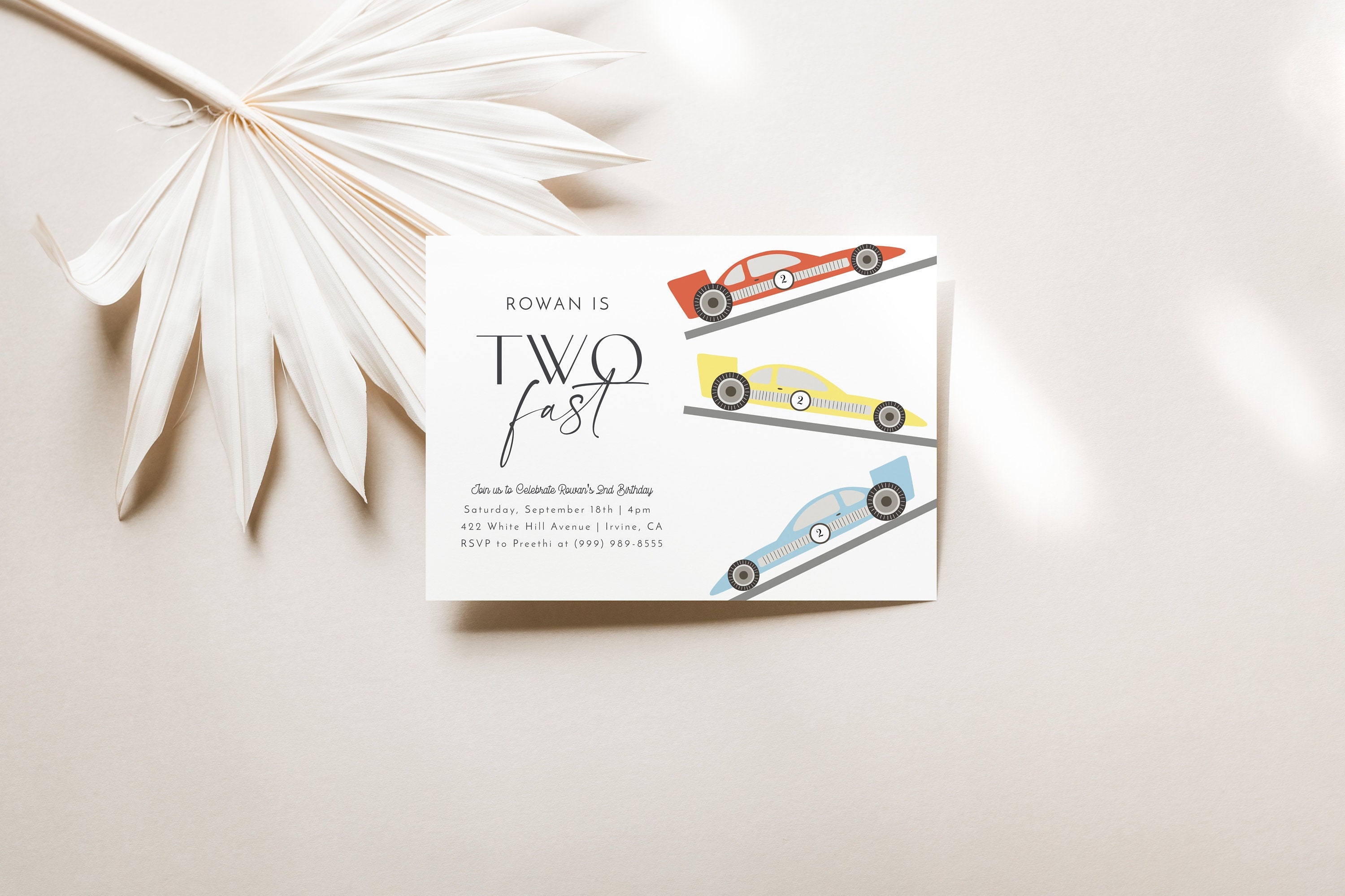 Race Car Birthday Invitation, Modern Race Car Invite, Too Fast, First ...