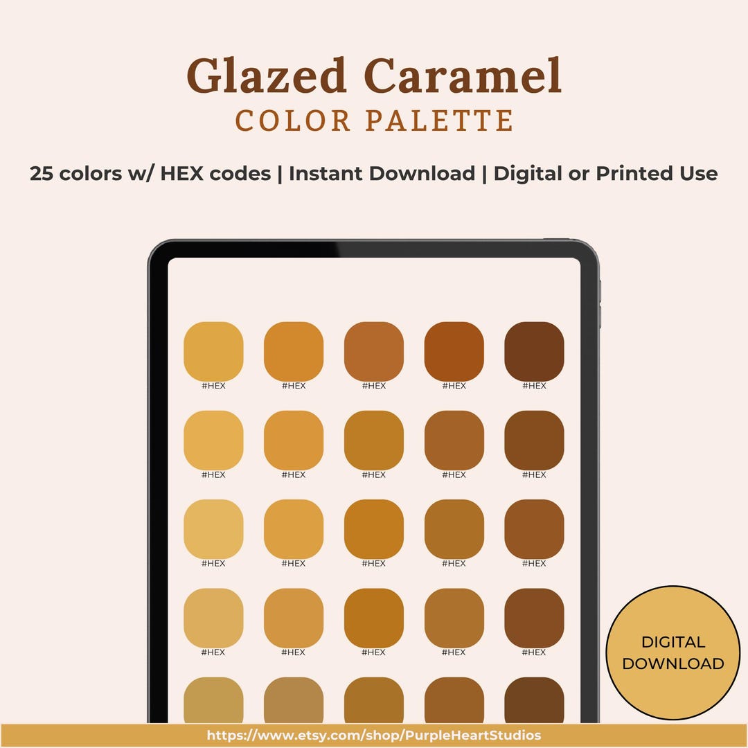 Glazed Caramel Color Palette | 25 HEX Codes Color Swatches | Digital ...