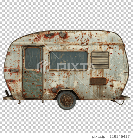 Classic weathered caravan featuring rust and...のイラスト素材 [119346437] - PIXTA