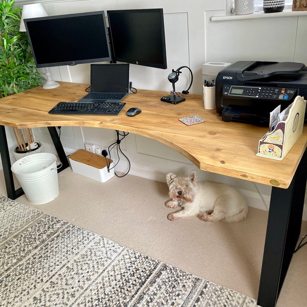 Reclaimed Curved Desk With Trapezium Legs and Cabling Holes - Etsy