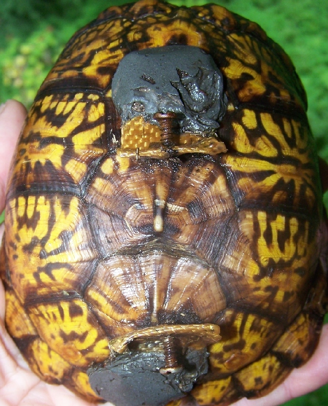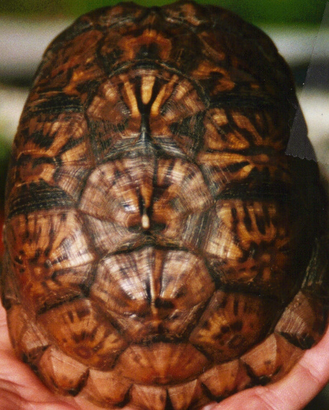 Carapace of a male Jardine River turtle showing healed scarring from ...