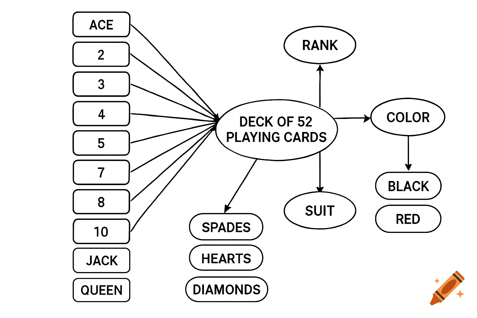 A knowledge graph diagram showing concepts related to a deck of playing ...